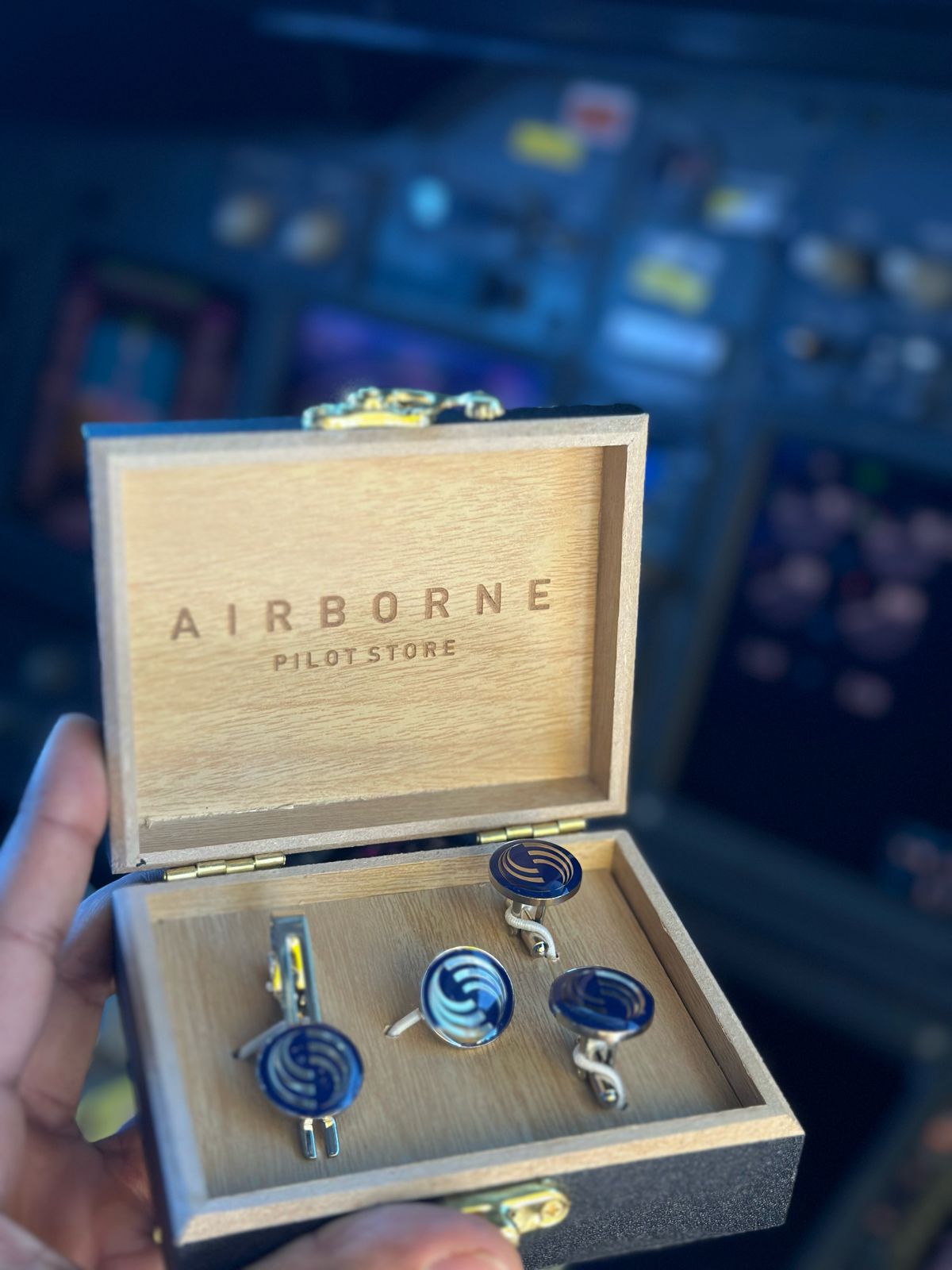 Beautifully packaged in a black wooden presentation box with Airborne Pilot Store Branding, this elegant set is ideal for formal wear, special occasions, or as a distinguished keepsake for any Airbus fan.